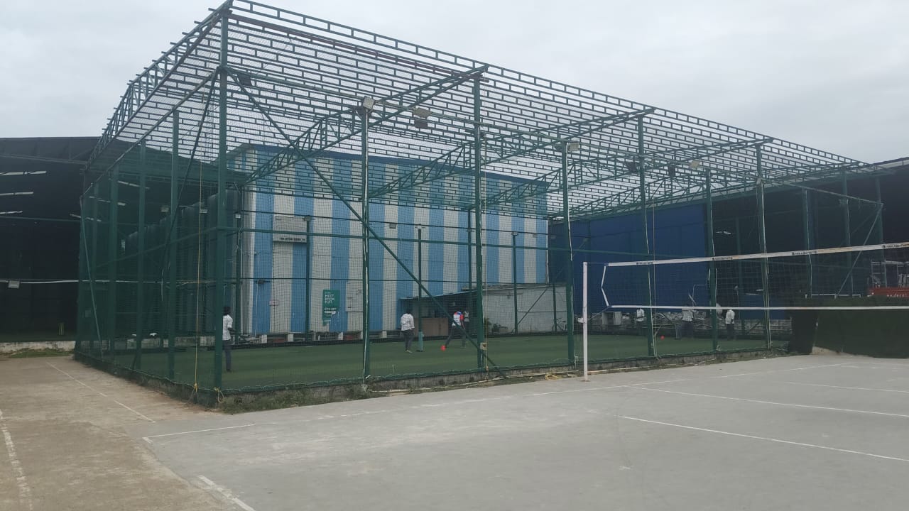 Book cricket turf, badminton court, football turf, volleyball nets & silambam coaching — all at one professional sports complex.