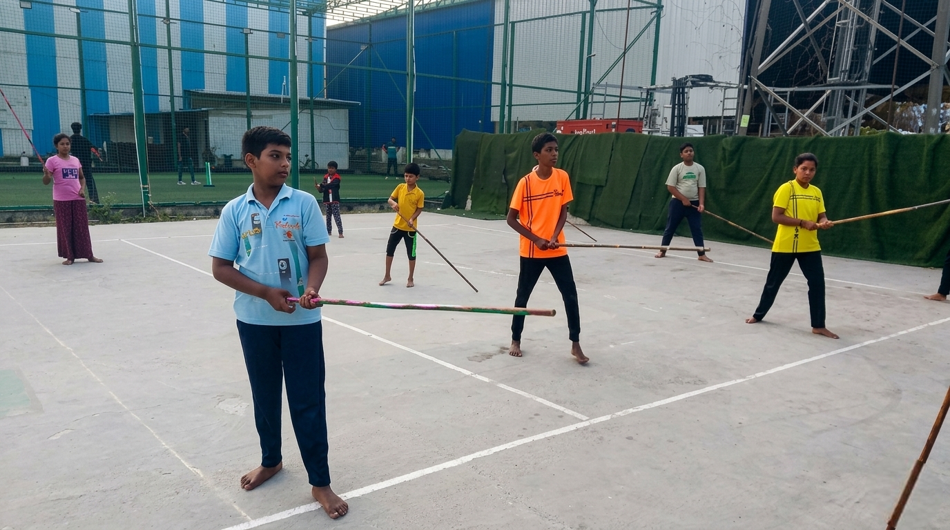 Traditional Silambam training focused on discipline, self-defense, and fitness for all levels.